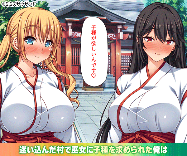 道に迷い込んだ先で出会った可愛くてムチムチな巫女二人。村の風習に従って子種を求められるがまま、一心不乱に子作りを始めます。
